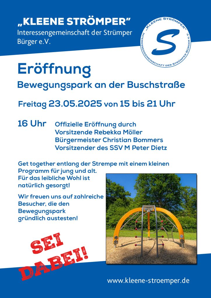 Um 16 Uhr findet die offizielle Eröffnung durch Vorsitzende Rebekka Möller, Bürgermeister Christian Bommers und den Vorsitzenden des SSV M Peter Dietz statt.